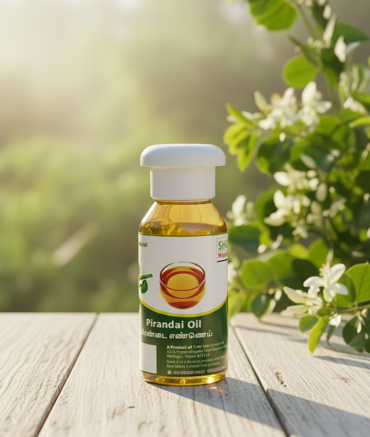 The name "Pirandai" derives from the Tamil language, where the plant is known for its potent medicinal properties. Whether you're looking to address existing bone concerns or simply want to maintain strong and healthy bones, this oil offers a traditional approach to bone wellness.