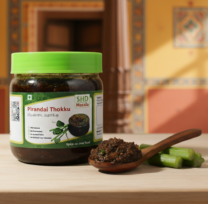 At SHD Special, we take pride in offering you the finest quality Pirandai Thokku available in a convenient 100G/300G/500G container. Our Pirandai Thokku is handcrafted in small batches using the freshest ingredients, ensuring that each jar is packed with authentic taste and goodness.